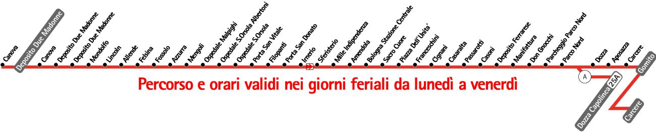 Linea 25: Carcere/Dozza - Stazione Centrale - Ospedale Malpighi - Fossolo - Due Madonne