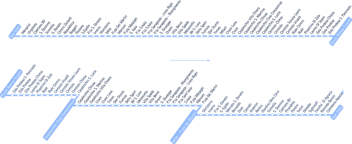 Linea Notturna N3: Ponte Ronca - Casalecchio - Stazione Centrale - San Donato - San Sisto