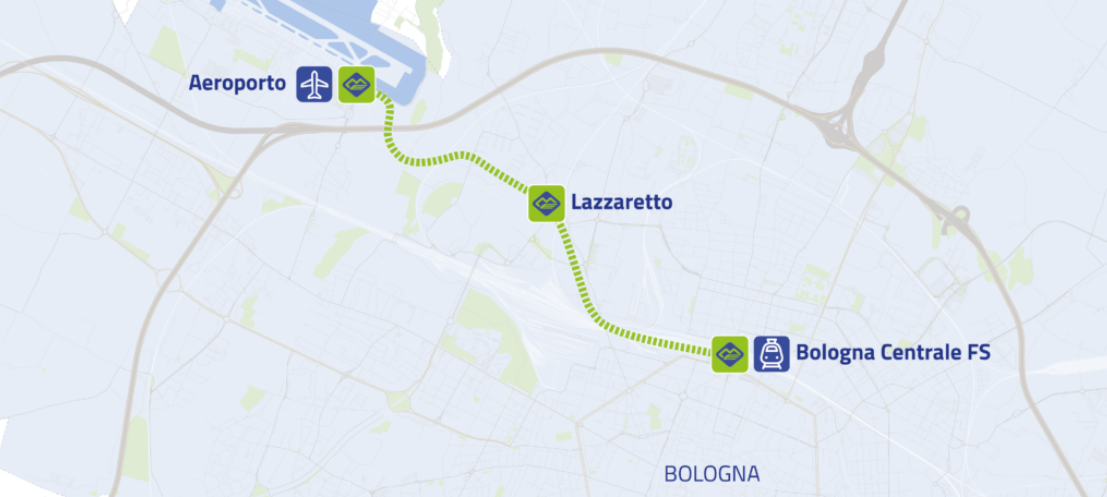 Con il Marconi Express raggiungi l’aeroporto di Bologna dalla Stazione Centrale e dal centro città in 7 minuti e mezzo, su un percorso sopraelevato senza interferenze con il traffico stradale, con una navetta elettrica comoda, veloce e pulita.